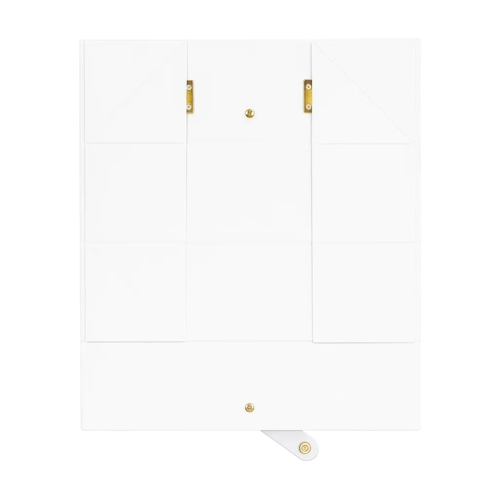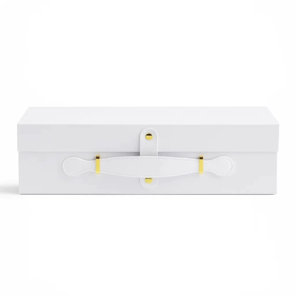 A Caixa Dobrável de Papel Kraft Branca com Alça para Vinho combina praticidade, resistência e um visual moderno e elegante. Com formato vertical e estrutura rígida, é ideal para garrafas de vinho, tornando-se uma excelente opção para brindes corporativos, kits personalizados e presentes sofisticados.