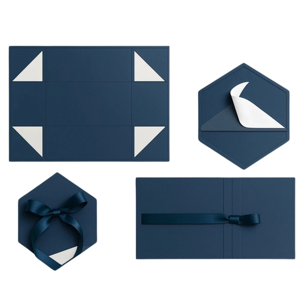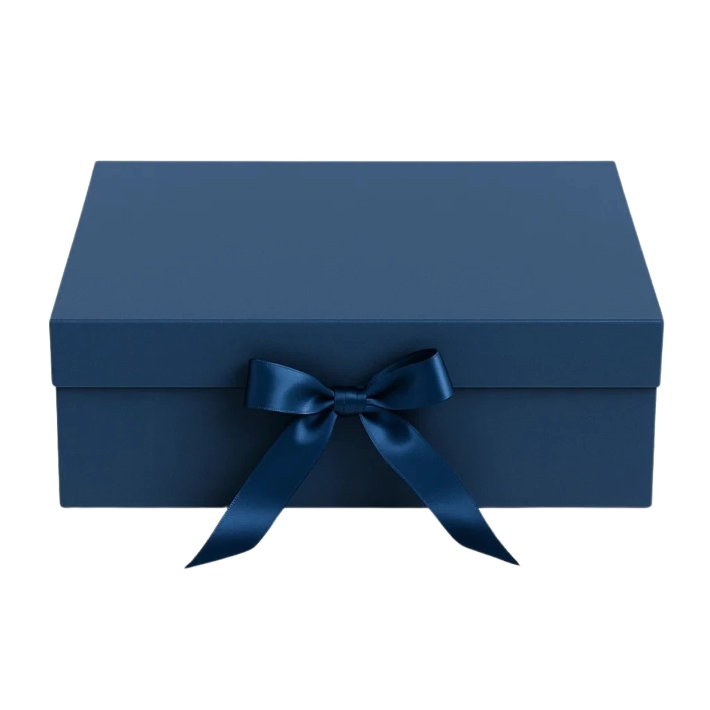 A Caixa Dobrável Azul com Fita de Cetim no tamanho P (28,2x20,2x9,2cm) é ideal para montar kits de presente com charme e sofisticação. O acabamento laminado confere elegância, enquanto a fita de cetim e o fechamento com ímã garantem praticidade e beleza na apresentação.