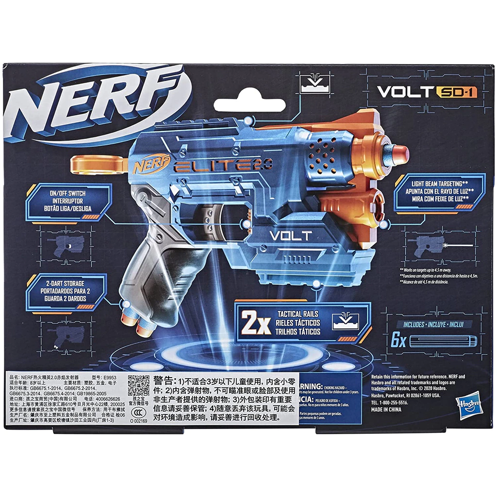 A aventura sobe de nível com os lançadores Nerf Elite 2.0, que apresentam recursos de personalização integrados para que se possa utilizar acessórios e sair na frente na aventura Nerf. É hora de montar seu próprio lançador Nerf Elite 2.0 para otimizar sua estratégia de jogo e trazer desempenho tático e flexibilidade a todas as aventuras! O lançador Nerf Elite 2.0 Volt SD-1 possui 2 trilhos táticos para personalizar com acessórios Nerf dependendo da aventura. A mira luminosa incluída facilita mirar em am- bientes menos claros, com um alcance de até 4,5 m. Este lançador de lançamentos únicos possui porta-dardos para 2 dardos. Inclui 6 dardos Nerf oficiais. Recomenda-se o uso de óculos. Requer pilhas. Óculos, pilhas e acessórios extra não incluídos.
