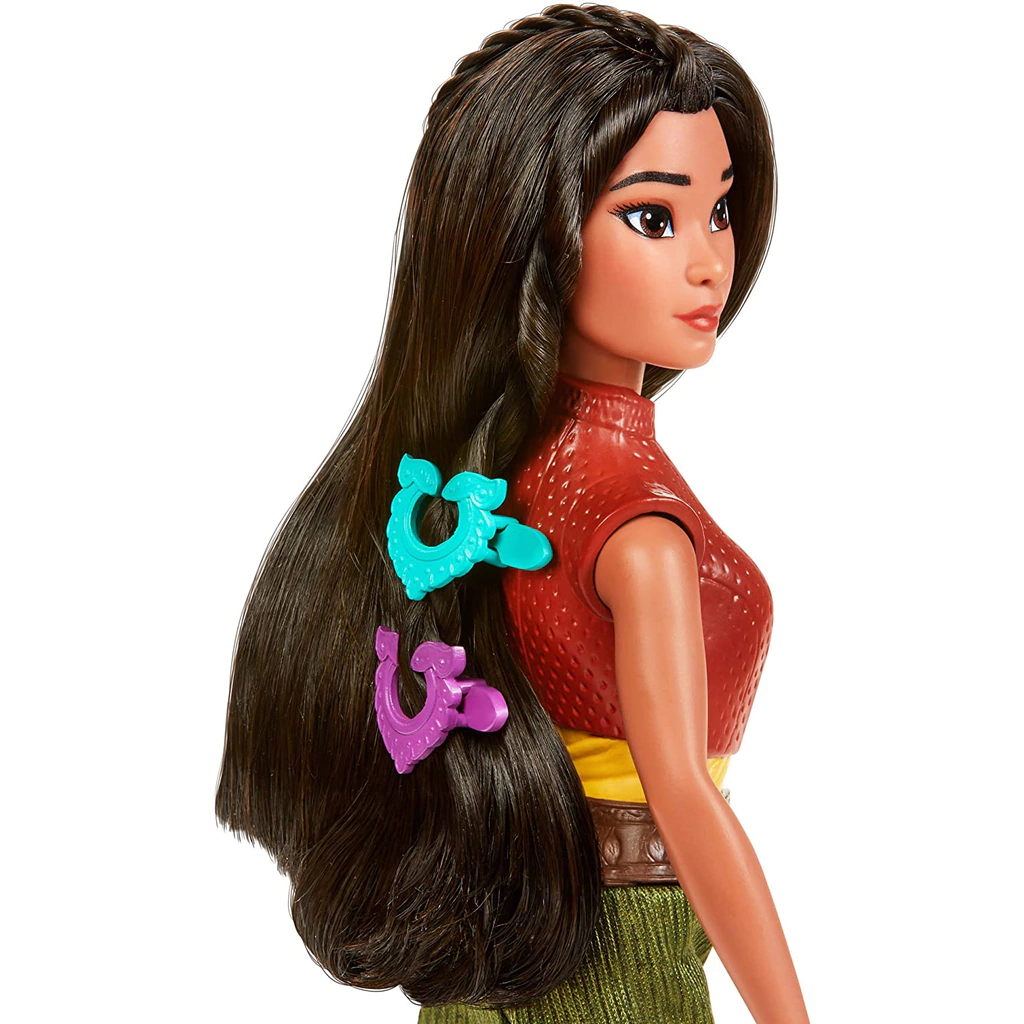 Quando o reino de Kumandra é ameaçado, a guerreira Raya deve encontrar o último dragão para salvar o seu mundo. Com o kit Força e Estilo, as crianças podem imaginar o poder de Raya ao criar lindos penteados nos longos cabelos da boneca. Basta apertar repetidamente o botão da ferramenta para criar penteados. Depois, basta escovar o cabelo e começar de novo. O kit vem com presilhas para mais penteados. Esta boneca inclui roupas: corpete moldado, colete marrom, cinto, botas e calças verdes. Esta boneca inspirada no filme é um presente incrível de aniversário ou outras celebrações para crianças a partir de 3 anos. Outros personagens disponíveis como Sisu e Tuk Tuk (vendidos separadamente e sujeitos à disponibilidade).
