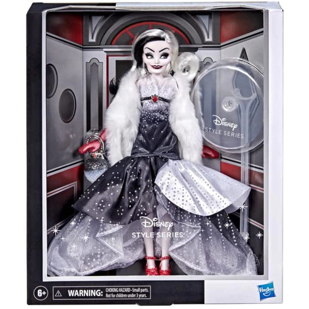 Esta boneca Cruela De Vil apresenta a personagem num visual moderno. Esta boneca inspirada em Cruela combinar elegância moderna e estilo clássico. Esta boneca vem com cílios e a cabelo de boneca. A boneca Cruela De Vil vem com uma serpente, par de sapatos, luvas, bolsa, colar e brincos para completar o visual elegante. Os fãs vão amar o toque especial contemporâneo desta série de bonecas de suas personagens favoritas.
