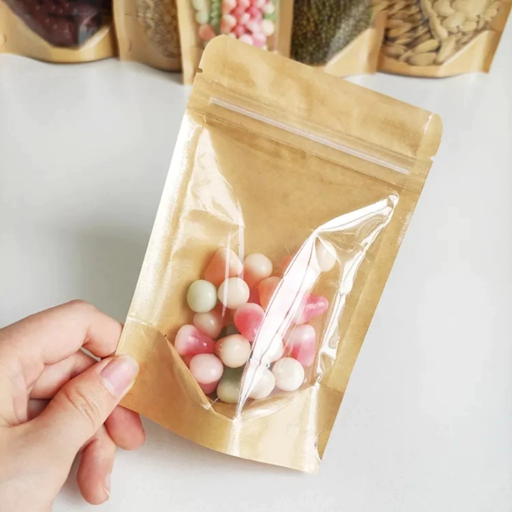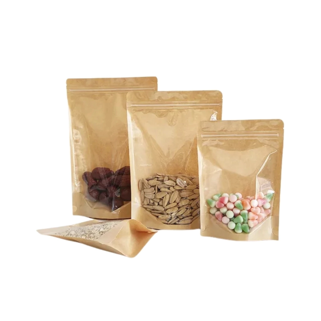 O Saco Stand Up Pouch Kraft com Frente Transparente 14x20+4cm é ideal para unir a elegância do kraft com a praticidade da frente transparente, permitindo que o conteúdo fique em evidência. Seu acabamento natural oferece uma proposta ecológica e moderna para diversos tipos de produtos.