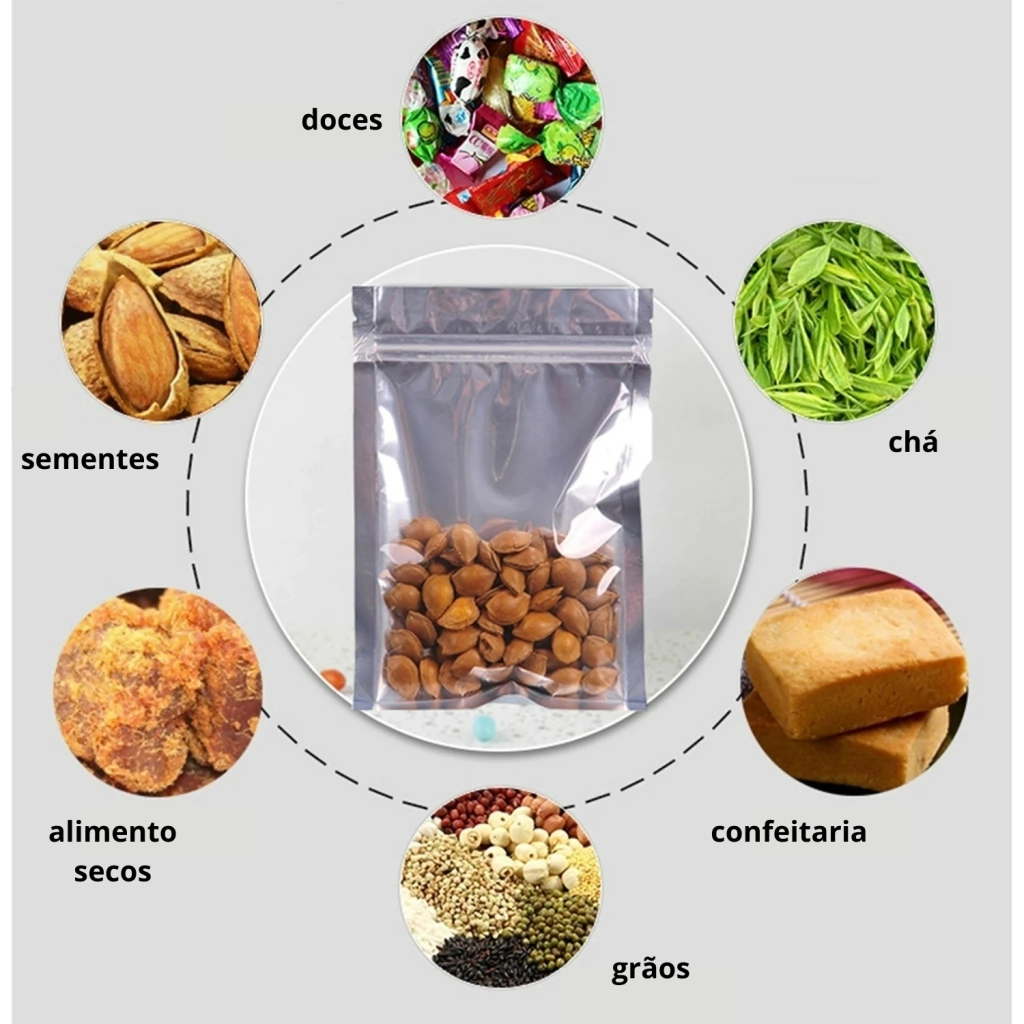 - Fechamento zip hermético reutilizável e possibilidade de lacre térmico